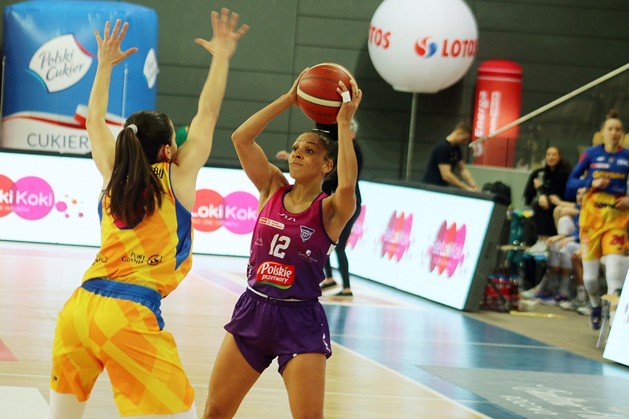 Metropolia Bydgoska29-01-2022_koszykówka_Suzuki Puchar Polski_półfinał Polskie Przetwory Basket 25 Bydgoszcz – VBW Arka Gdynia_Nikki Eivery, Pinelopi Pavlopoulou – SF