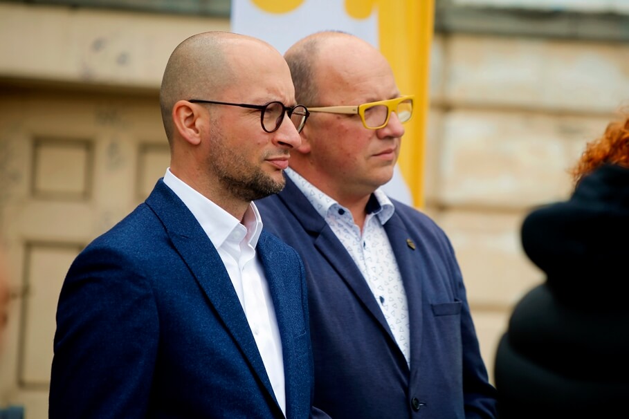Metropolia Bydgoska4-10-2023_konferencja prasowa Polska 2050 Bydgoszcz_Sławomir Drelich, Radosław Rataj – SF