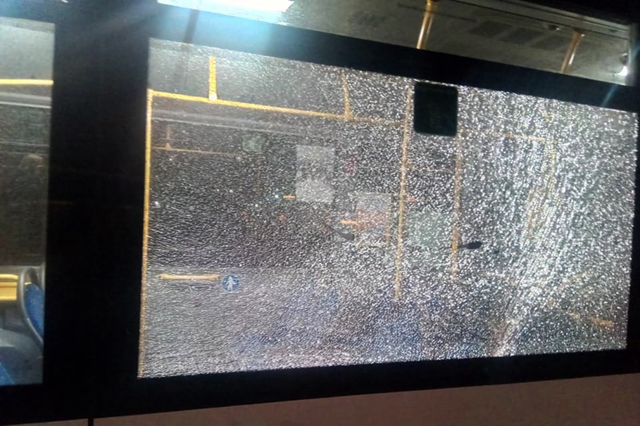 Metropolia Bydgoska8-12-2019_ ostrzelana szyba_ autobus MZK Bydgoszcz-nadesłane