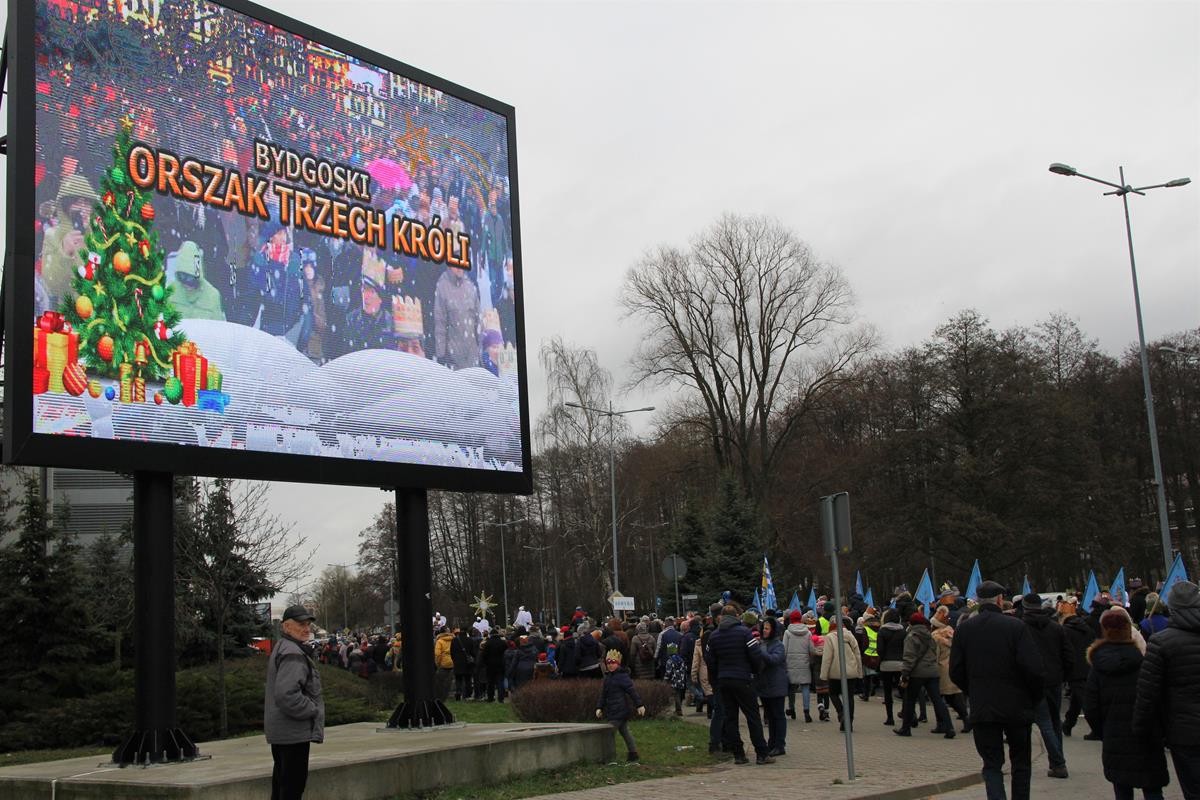 Barwny korowód Bydgoskiego Orszaku Trzech Króli  wyruszył z placu Kościeleckich do hali Łuczniczka, gdzie oddano pokłon Jezusowi.