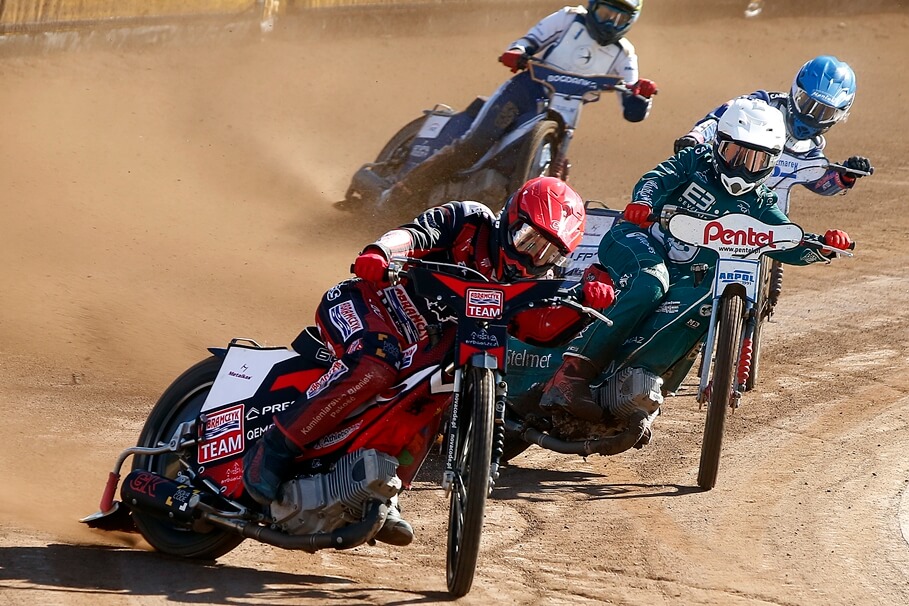 Metropolia BydgoskaĆwierćfinał DMPJ. Wygrana ABRAMCZYK Polonii na własnym torze [ZDJĘCIA]2-07-2025_żużel_Drużynowe Mistrzostwa Polski Juniorów Bydgoszcz_ćwierćfinał_Emil Maroszek, Kacper Mania, Damian Ratajczak, Paweł Czaus – SF