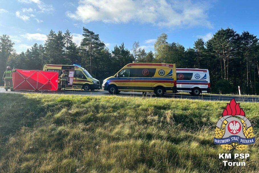Metropolia BydgoskaCzołowe zderzenie na S10. Jedna osoba nie żyje, sześć zostało rannych [ZDJĘCIA]5-10-2025_śmiertelny wypadek S10 Toruń_KM PSP Toruń-3