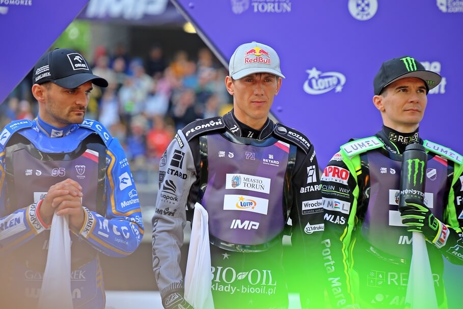 Metropolia BydgoskaIMP w Toruniu. Kubera najlepszy, dobry występ Przyjemskiego19-06-2025_żużel_Indywidualne Mistrzostwa Polski_finał Toruń_Maciej Janowski, Bartosz Zmarzlik, Patryk Dudek – SF