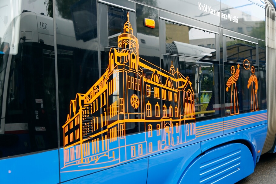 Metropolia BydgoskaJubileuszowy tramwaj UKW na bydgoskich torach. Grafiki przygotowały pracownice Pesy9-07-2025_Bydgoszcz_tramwaj PESA Swing_oklejenie_UKW – SF-2