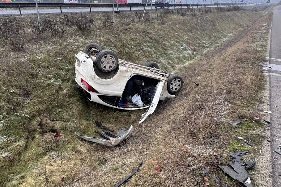 Metropolia BydgoskaKolejne zderzenie dwóch aut pod Bydgoszczą. Kierowca jednego z nich dachował [ZDJĘCIA]wypadek pawłówek 25 11 2025 pomoc drogowa krystian andruszczenko (6)