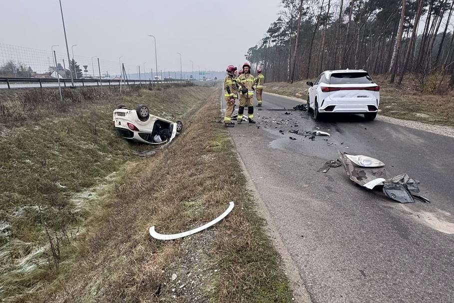 Metropolia BydgoskaKolejne zderzenie dwóch aut pod Bydgoszczą. Kierowca jednego z nich dachował [ZDJĘCIA]wypadek pawłówek 25 11 2025 pomoc drogowa krystian andruszczenko (7)