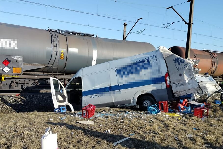 Metropolia BydgoskaKrok od tragedii na przejeździe kolejowym. Auto dostawcze zmiażdżone przez pociąg towarowy [ZDJĘCIA]19-02-2026_wypadek przejazd kolejowy Anusin
