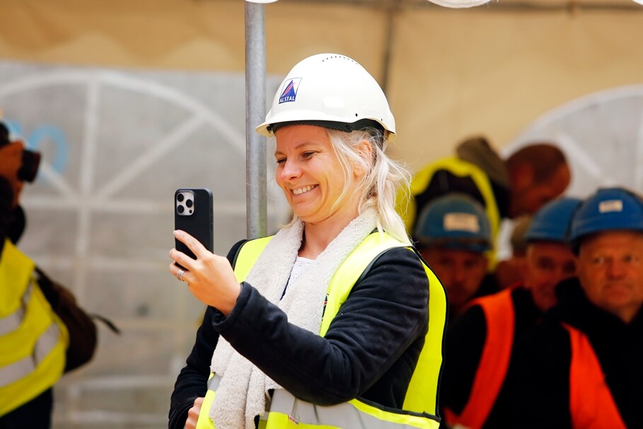 Metropolia BydgoskaLaurowy Zakątek w Fordonie coraz bliżej. Alstal Dom przechodzi do ostatniej fazy inwestycji [ZDJĘCIA]30-09-2025_Bydgoszcz Fordon_zawieszenie wiechy_Laurowy Zakątek – SF-22