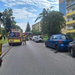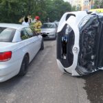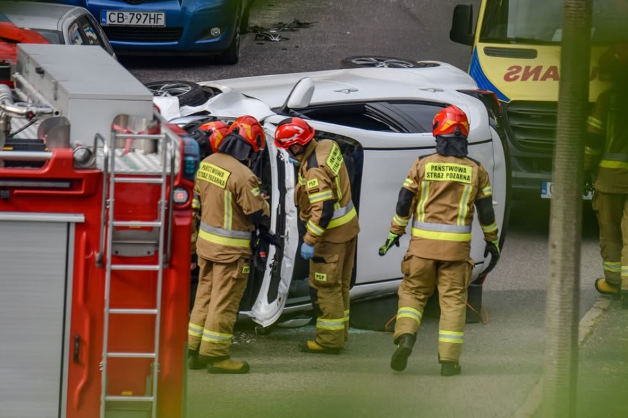Do niebezpiecznego zdarzenia doszło w poniedziałek na Wyżynach. Po uderzeniu w inne pojazdy samochód osobowy przewrócił się na bok.