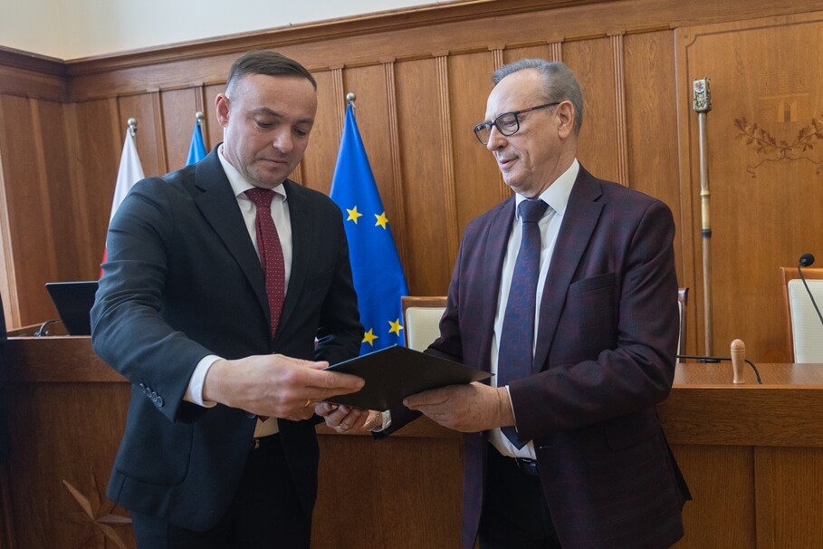 Metropolia BydgoskaNowi radni sejmiku województwa odebrali zaświadczenia o wyborze [ZDJĘCIA]25-04-2024_Toruń_sejmik województwa_zaświadczenie o wyborze_Przemysław Sznajrowski, Andrzej Siuchniński_fot. MKuras dla UMWKP