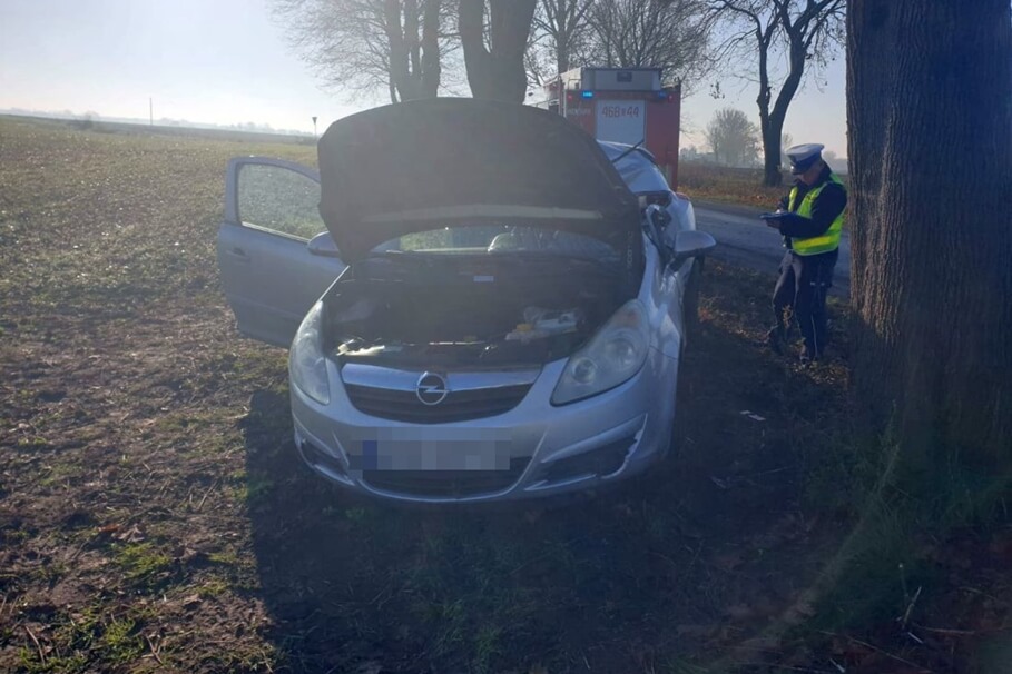 Metropolia BydgoskaOpel uderzył w przydrożne drzewo. Dwie nastolatki zabrane do szpitala [ZDJĘCIA]7-11-2025_wypadek Dąbrowa Biskupia_KPP Inowrocław-1