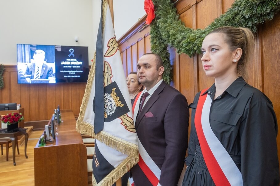 Metropolia BydgoskaRadni sejmiku województwa upamiętnili Jacka Woźnego. Jutro pogrzeb byłego rektora UKW [ZDJĘCIA]2-01-2026_urząd marszałkowski Toruń_uczczenie pamięci Jacka Woźnego_poczet sztandardowy_fot MKuras_KPUM_mat. prasowy