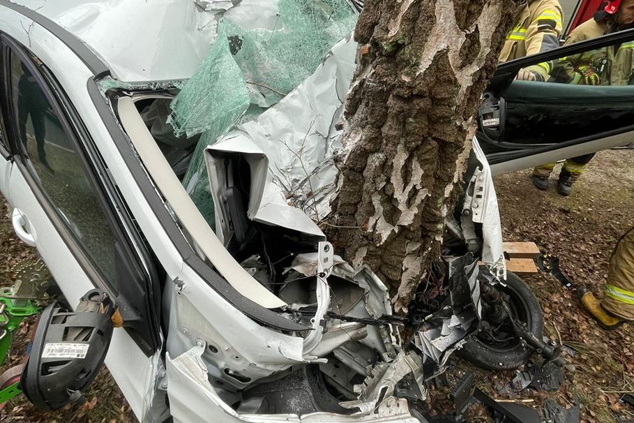 Metropolia BydgoskaRozbił auto o drzewo. Groźny wypadek nieopodal Bydgoszczy [ZDJĘCIA]wypadek bożenkowo 25 11 2025 osp wtelno 5