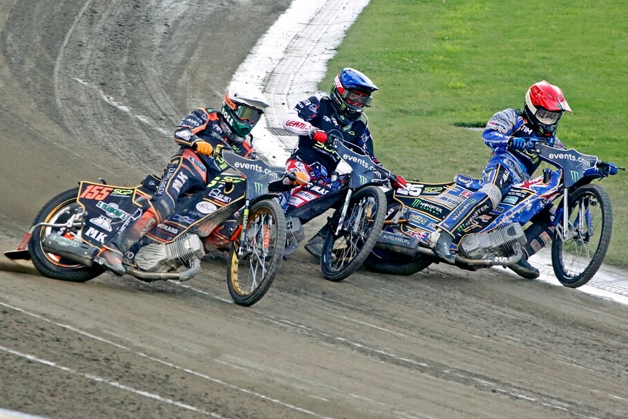 Metropolia BydgoskaSGP Polski w Gorzowie. Triumf Kurtza, koszmarny upadek Huckenbecka21-06-2025_żużel_FIM Speedway Grand Prix Polski Gorzów Wielkopolski_Jack Holder, Fredrik Lindgren, Mikkel Michelsen – SF