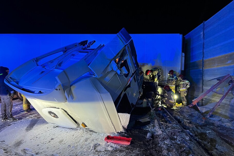 Metropolia BydgoskaŚnieg na Kujawach i Pomorzu. Seria groźnych wypadków na A1, są poszkodowani [ZDJĘCIA]4-01-2025_wypadek autostrada A1 Pieńki Królewskie_KM PSP Grudziądz-4