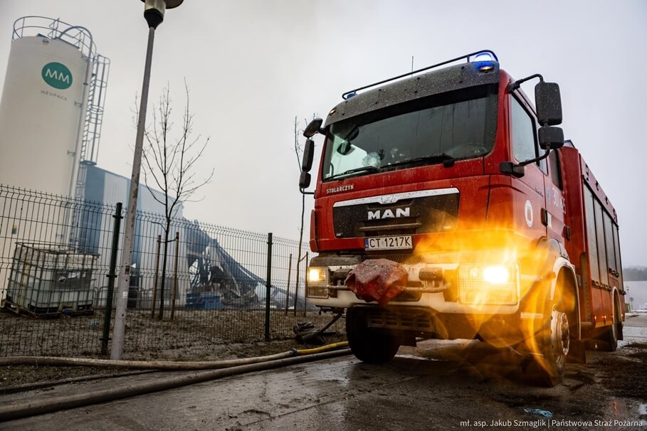 Metropolia BydgoskaStrażacy dogaszają pożar na terenie zakładów MMP Neupack. Znamy wstępną przyczynę zdarzenia [ZDJĘCIA]6-01-2025_pożar Bydgoszcz_KG PSP-22