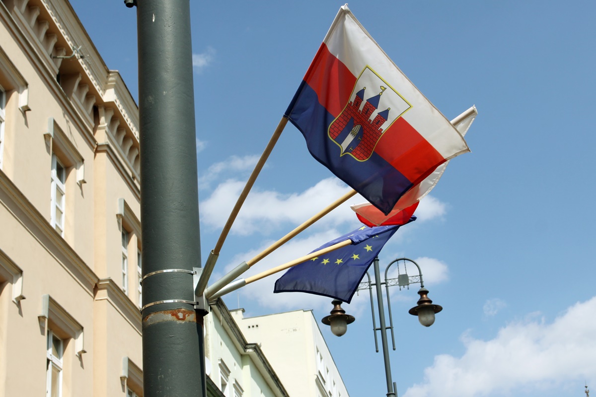 Metropolia BydgoskaTerenowa Masakra 2022. Śmiałkowie rywalizowali w Myślęcinku [ZDJĘCIA]2-05-2022_Bydgoszcz_Flaga_Flaga miasta Bydgoszcz, flaga Polski, flaga Unii Europejskiej – SF