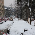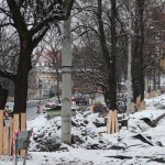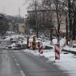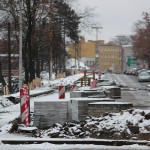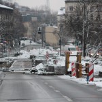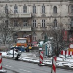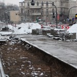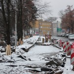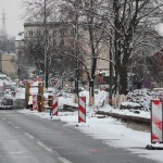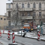 Na Wałach Jagiellońskich trwają prace związane z budową buspasa.