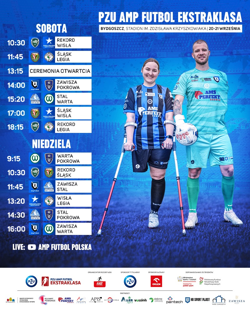 Zespoły rywalizujące w PZU Amp Futbol Ekstraklasie są obecnie podzielone na dwie grupy. Zawisza rywalizuje o miejsca 5-8. W ramach turnieju w Bydgoszczy rozegra trzy mecze – w sobotę o godz. 14:00 z Pokrową Lwów oraz w niedzielę o 11:45 ze Stalą Rzeszów i o 16:00 z Wartą Poznań. W drugiej grupie rywalizować będą Rekord Bielsko-Biała, Śląsk Wrocław Wisła Kraków i Legia Warszawa.