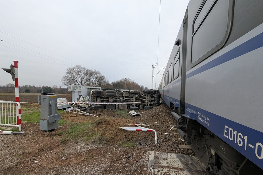 Metropolia BydgoskaWypadek pociągu jadącego z Bydgoszczy w kierunku Lublina. Są poszkodowani [ZDJĘCIA]26-11-2024_wypadek_przejazd kolejowy Nowa Sucha_KP PSP Sochaczew-2