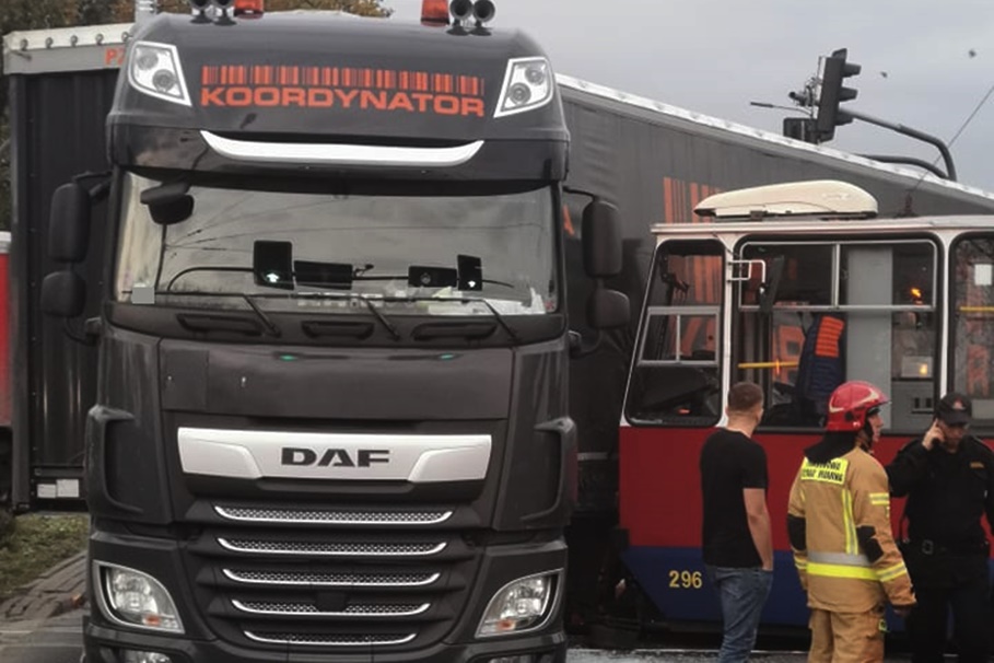 Metropolia BydgoskaWypadek z udziałem tramwaju i ciężarówki na rondzie Fordońskim [ZDJĘCIA]25-10-2019_ wypadek rondo Fordońskie – JS