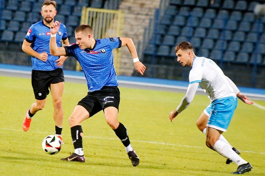 Metropolia BydgoskaZawisza pewnie pokonał Błękitnych. Zasłużone zwycięstwo3-10-2025_piłka nożna_III liga_Zawisza Bydgoszcz – Błękitni Stargard_Marcel Strzyżewski, Michał Cywiński, Mateusz Piotrowski – SF